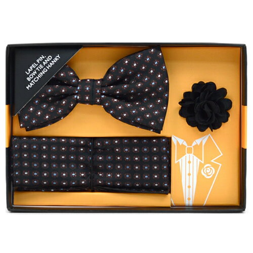 ボウタイ & ポケットチーフ & ラペルピン セット ブラック フラワー ドットアクセサリー メンズジュエリー ジュエリーギフト プレゼント お祝い 結婚式 礼服 結婚式 冠婚葬祭 ビジネス スーツ メンズ 男性 彼氏 夫 新生活 父の日 バレンタイン