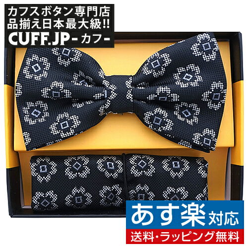 ボウタイ & ポケットチーフセット フローラル 花柄 ブラックアクセサリー メンズジュエリー ジュエリーギフト プレゼント お祝い 結婚式 礼服 結婚式 冠婚葬祭 ビジネス スーツ メンズ 男性 彼氏 夫 新生活 父の日 バレンタイン