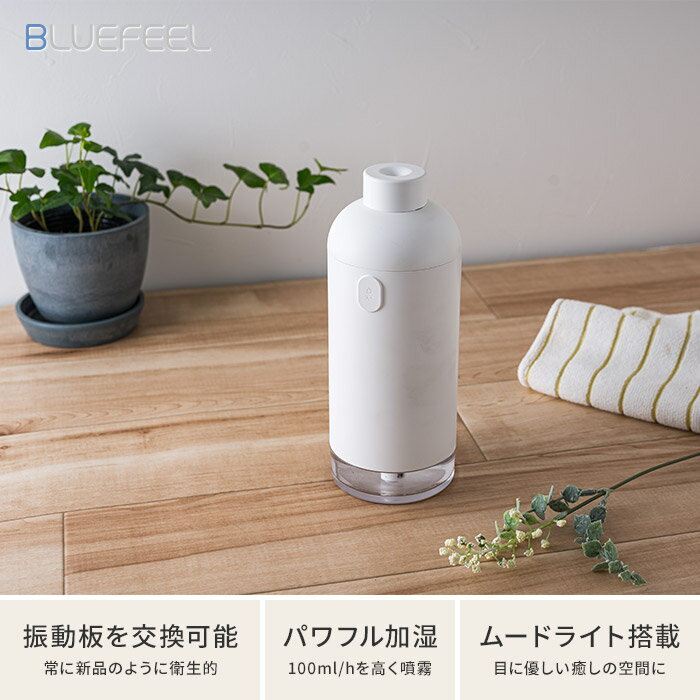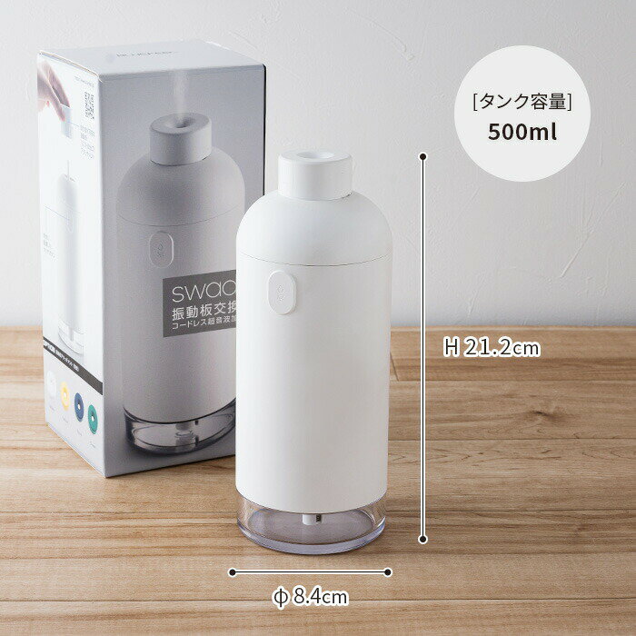 加湿器 卓上 超音波 充電式 コードレス ブルーフィール BLUEFEEL コードレス加湿器 SWADA BLF20356 ホワイト 超音波式 500ml LED USB 充電 軽量 LED搭載 小型 オフィス USB充電式 コンパクト おしゃれ モノトーン シンプル