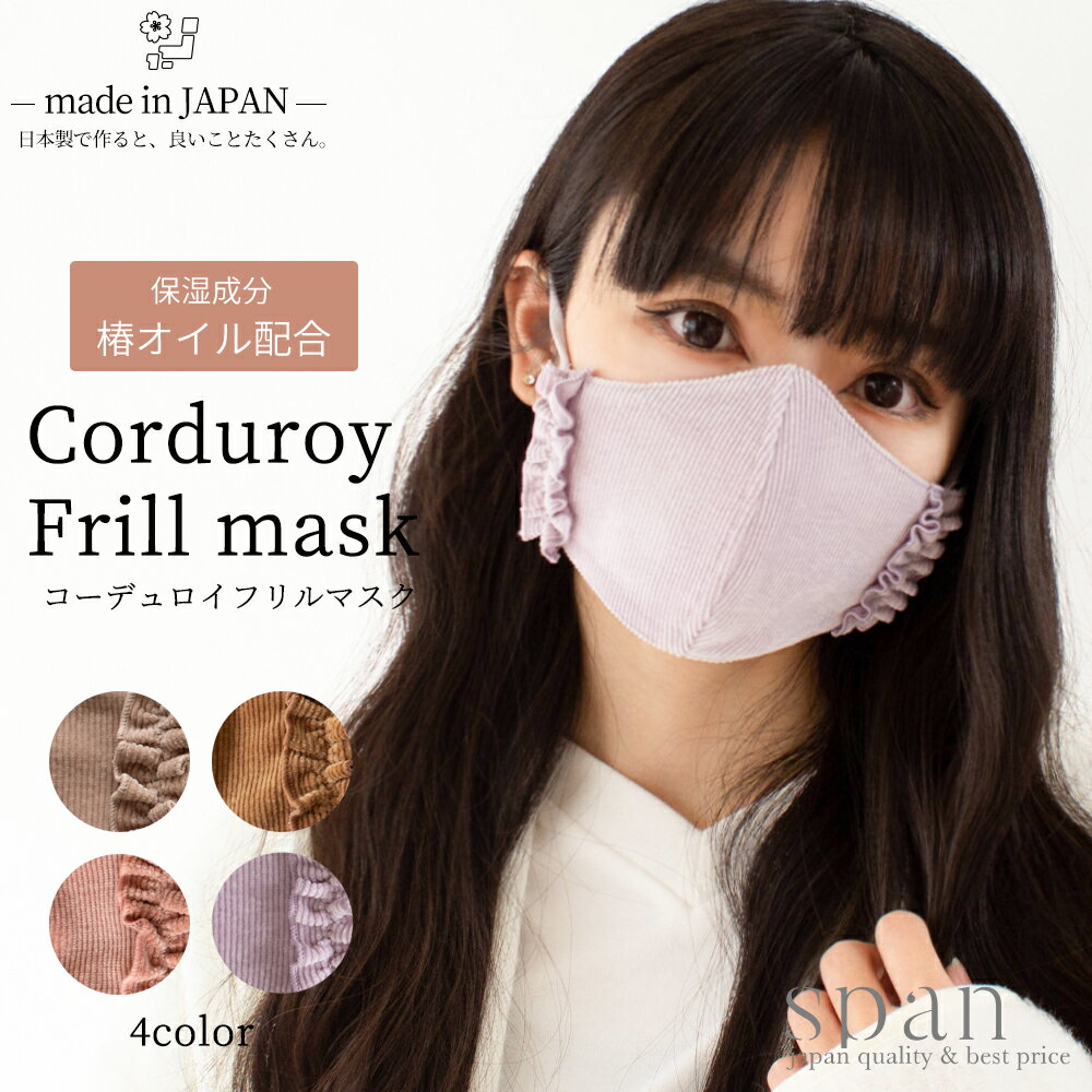 1/27(水)頃から順次出荷【日本製】 コーデュロイ フリルマスク 洗える 日本製マスク ワイヤー入り 送料無料 マスクもお洒落に 飛沫防止 抗菌 エチケット オシャレマスク ファッションマスク