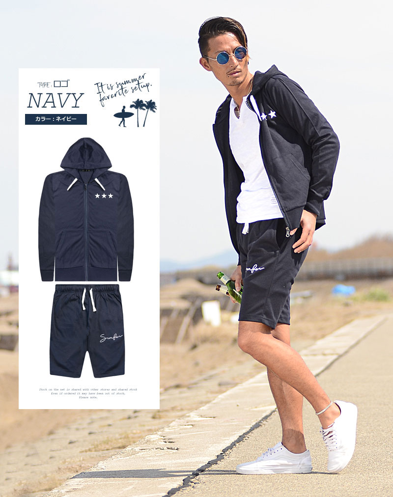◆サイズ◆ パーカー(M)肩幅約42m/身幅約47cm/着丈約64cm/袖丈約61cm パーカー(L)肩幅約44cm/身幅約50cm/着丈約67cm/袖丈約62cm パーカー(LL)肩幅約46cm/身幅約53cm/着丈約70cm/袖丈約63cm パンツ(M)ウエスト:約71cm〜(サイズ調整可)/わたり:約31cm/股上:約27cm/股下:約29cm パンツ(L)ウエスト:約78cm〜(サイズ調整可)/わたり:約32cm/股上:約28cm/股下:約30cm パンツ(LL)ウエスト:約84cm〜(サイズ調整可)/わたり:約33cm/股上:約29cm/股下:約31cm ※ウエストはドローコードにて調整可能 モデル:178cm 65kg L着用 ◆カラー◆ 【ライン】ブラック・グレー【星条旗】ネイビー【ロゴスター】ブラック・ネイビー ◆素材◆ ポリエステル65% 綿35%◆商品詳細◆ 2019年3月24日、新色追加して再販開始!気軽に気楽に着用できる、毎年大人気のスムース素材ショーツセットアップ薄めのスウェットに似た生地感で春・初夏のスタイルをカバー。